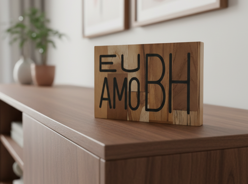 O ‘Eu Amo BH’ é uma homenagem à capital mineira e a tudo que ela representa: acolhimento, cultura, sabores e charme. Produzido em madeira maciça com formato retangular e gravação em baixo relevo preenchido com resina, é uma peça versátil que combina com qualquer ambiente — da sala ao escritório.